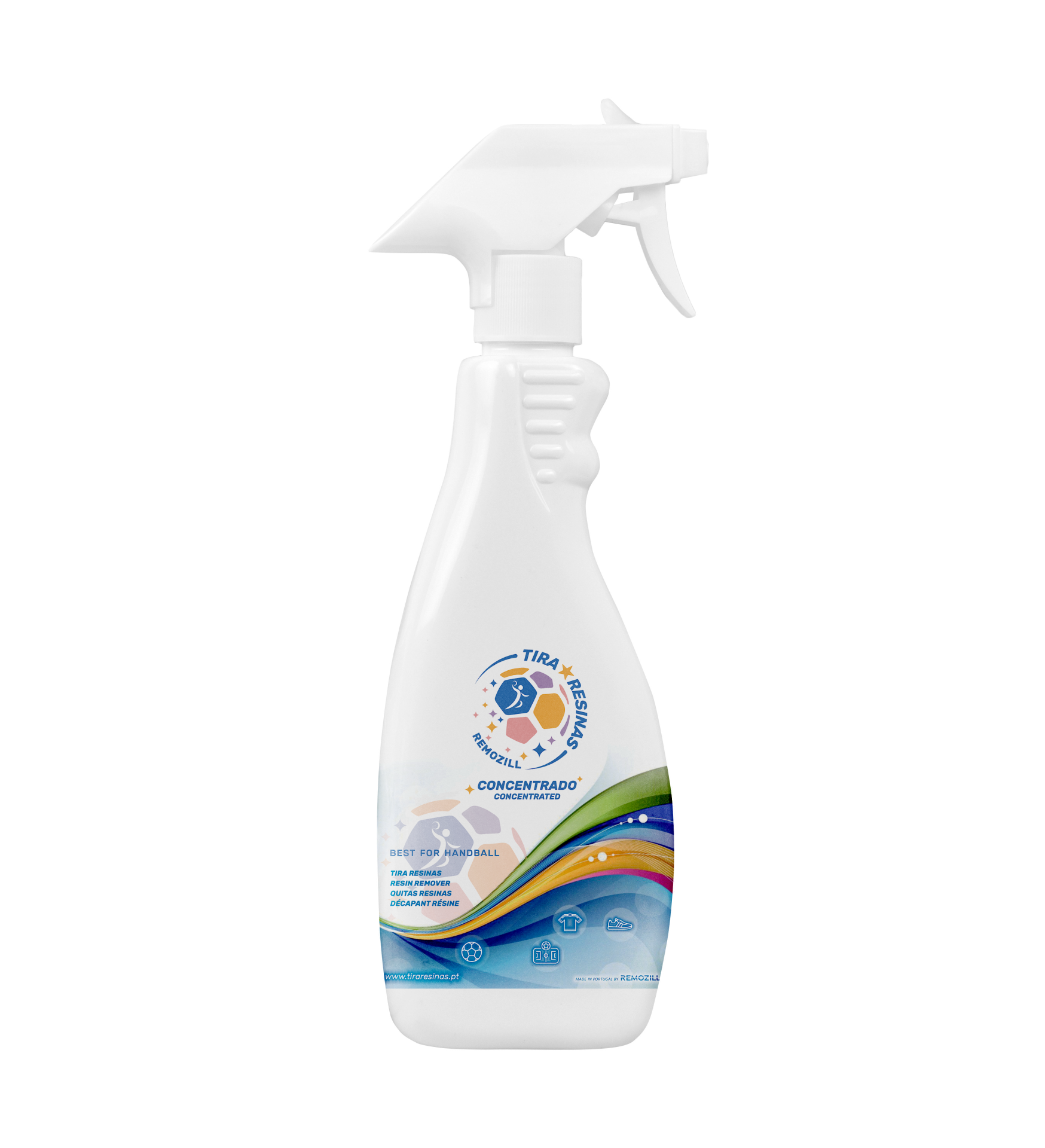 Trata-se do mesmo "Tira Resinas", mas em líquido concentrado, com e sem pulverizador, para facilitar os modos de aplicação directa ao vestuário e equipamento desportivo.
